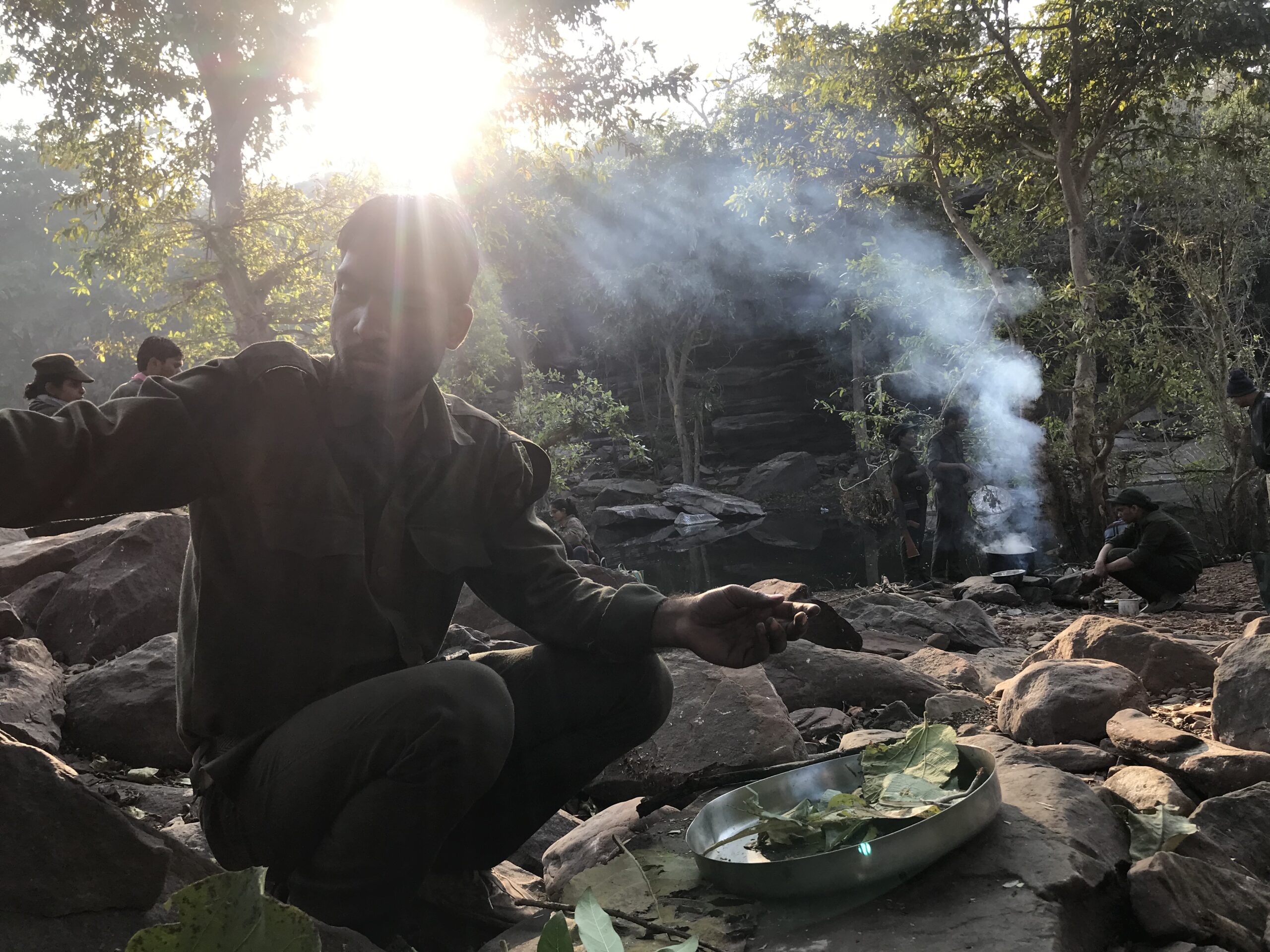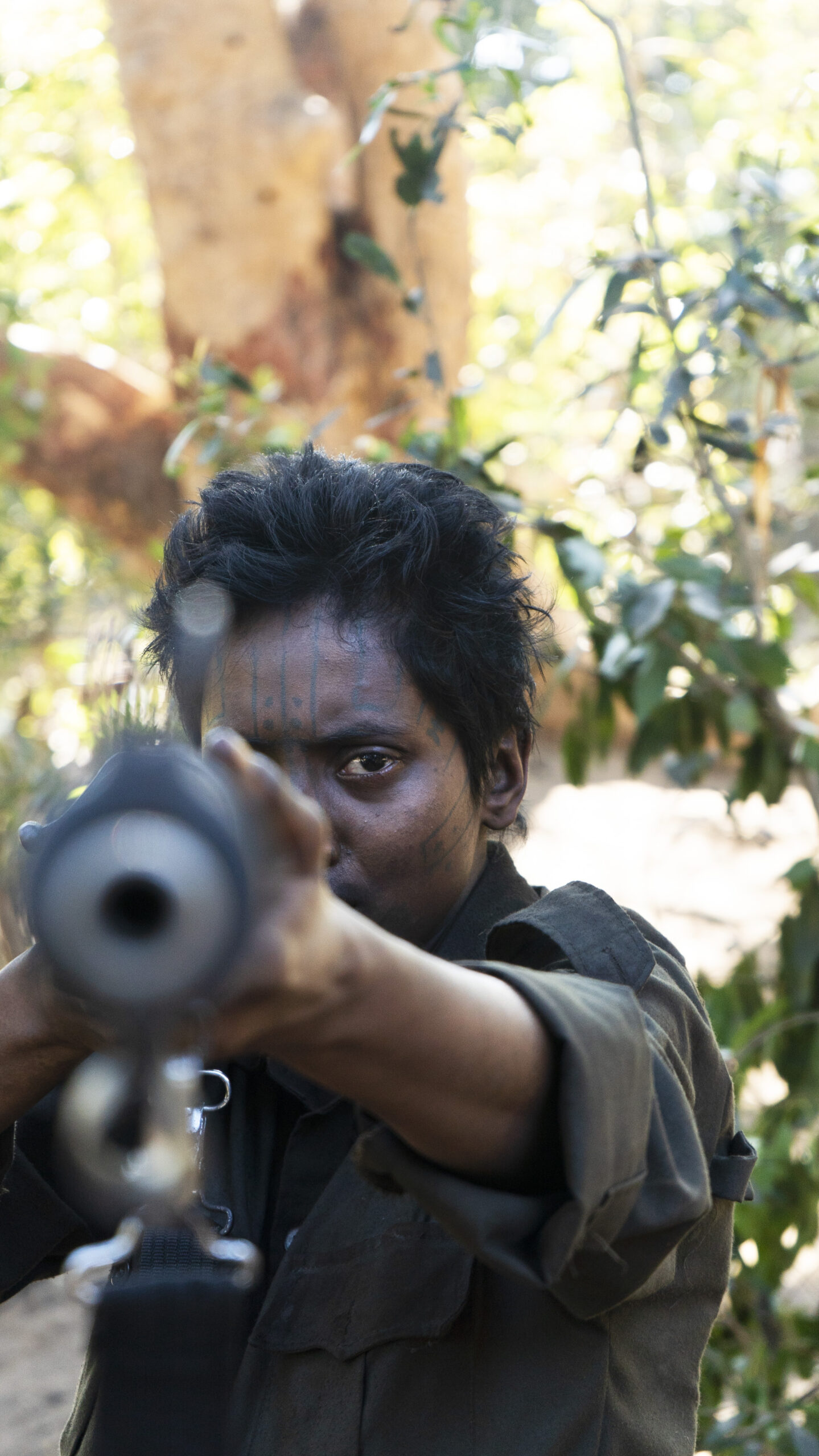 दूसरी फुटेज आती है। चींटी का स्वाद लेकर एक आदमी हँसता है। एक लड़की है जो आदिवासी क्रांतिकारीयों पर डॉक्यूमेंट्री बना रही है। वो पूछती है कि इन चीटियों ने तुम्हें कभी काटा नहीं। वो आदमी कहता है प्यार से छुओगे तो काटेगी नहीं। और वो उसे आग पर तपा देते हैं। हम चींटी को प्यार से छूते हैं ताकि उसे मारकर उसकी चटनी बना सकें। क्यूँकि खाने का चक्र पूरा करना है। चींटी हमें नहीं काटती क्यूँकि उसे हम पे भरोसा होता है। लेकिन जब चींटी का भरोसा टूटता है और वो पलटकर हमें काटने लगती है, वो मारी जाती है। दोनों स्तिथियों में चींटी का मरना तय है। बस दूसरी में हम यह कहकर अपनी हिंसा की सफ़ाई दे सकते हैं कि वो हमें काट रही थी इसलिए हमने उसे मारा। हम यह बताना भूल जाते हैं कि उसे काटने पर हमने ही मजबूर किया था। आदिवासी लोग किसके लिए चींटी हैं? कौन किसे खा रहा है? ये चक्र कौनसा है? कौन चला रहा है? क्यूँ चला रहे हैं? बहुत सारे सवाल।